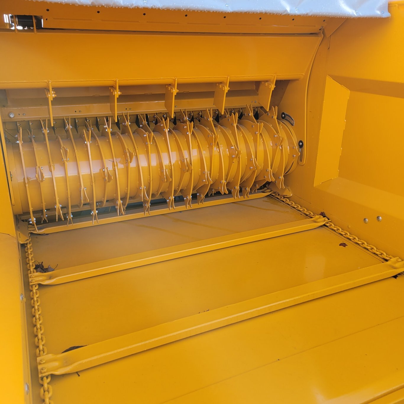 Clean and consistent cuts of 2-5cm length thanks to interchangeable screens. - wider box for easier bale loading - new intuitive Pro electric control - blows straw up to 15m distance, 2.7m high and 270 degrees - 1200 kg collection door, fixed hitch, wide angle on tractor side, 85 liter mist sprayer for dust control, second control station, extended universal chute, 235/75R 17.5 6-hole tires.